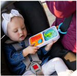 Inside are two interchangeable sensory tiles that invite kids to slide, spin, press, and explore simple motions that build real developmental skills. It’s durable, travel-ready, and made for everyday adventures.
